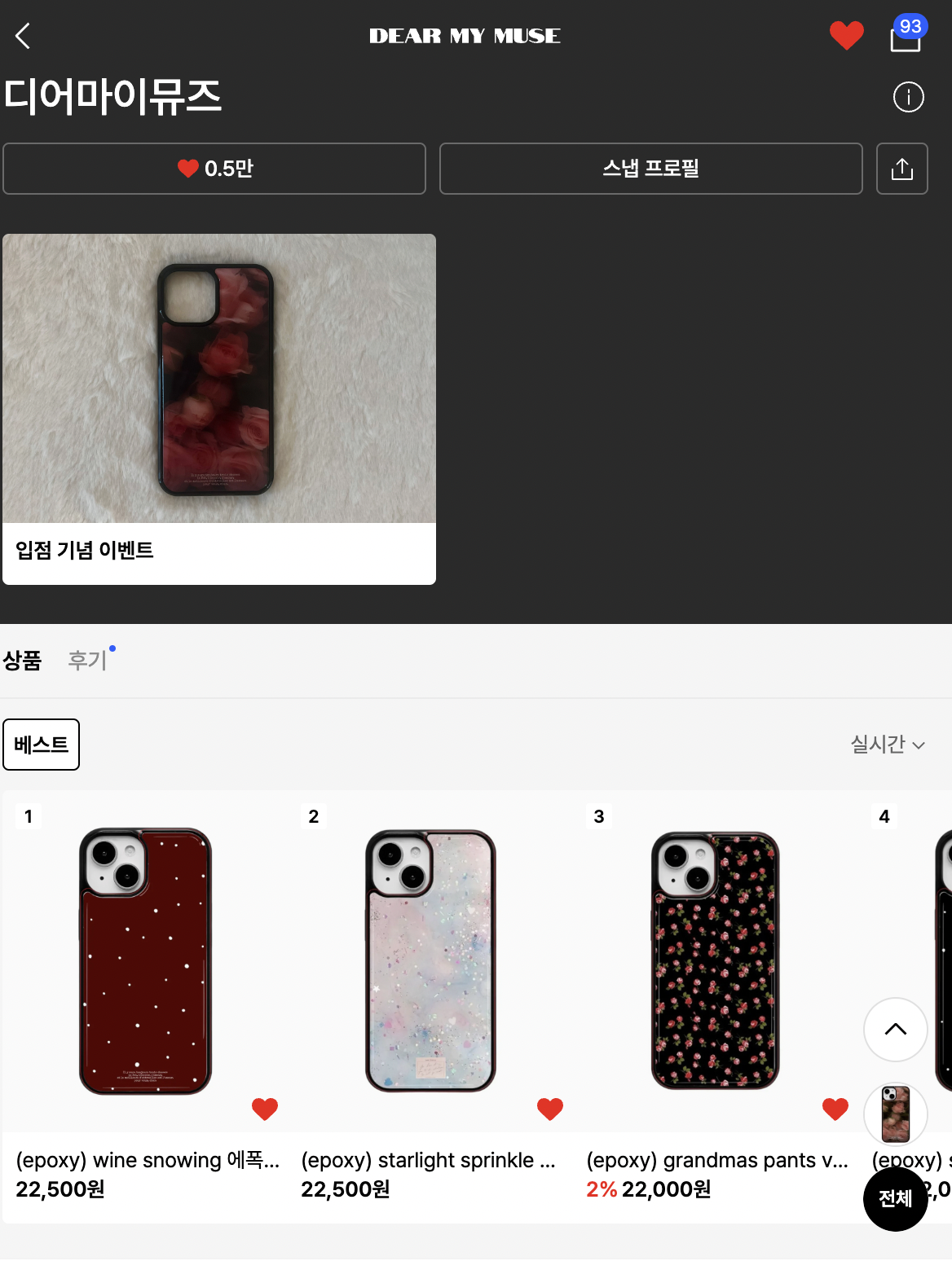 신규 입점 브랜드 ‘좋아요' 하기