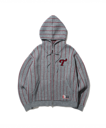 [LG트윈스] 스트라이프 니트 후드 집업_그레이