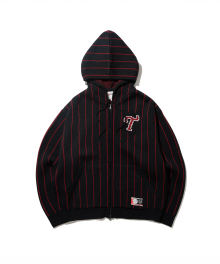 [LG트윈스] 스트라이프 니트 후드 집업_블랙